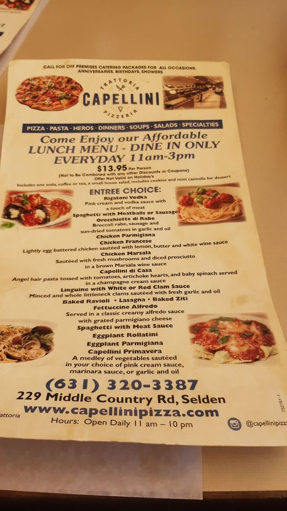 Welcome to Capellini Trattoria Pizzeria, a delightful culinary haven located in Selden, NY. This charming eatery specializes in authentic Italian fare, offering an intriguing menu that showcases both traditional and creative dishes.