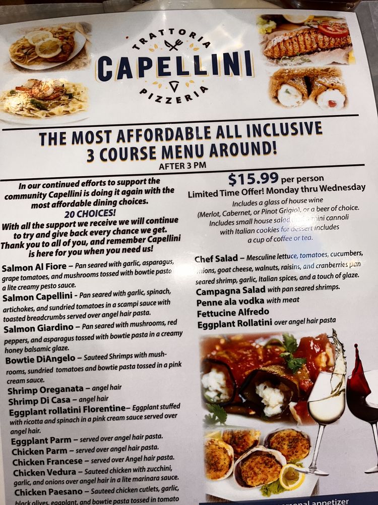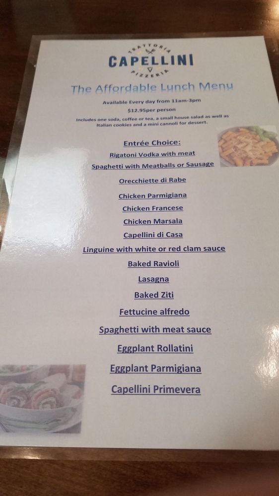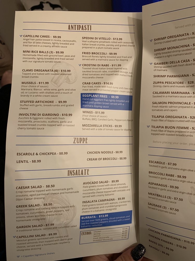 The menu at Capellini is a harmonious blend of flavor, tradition, and fresh ingredients, ensuring each visit is both satisfying and memorable.